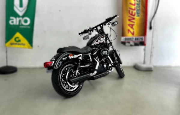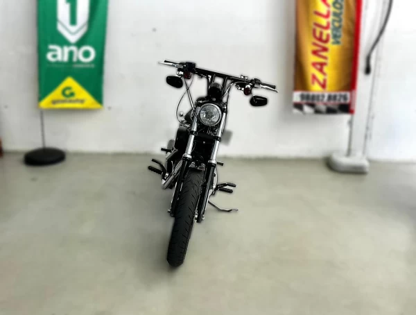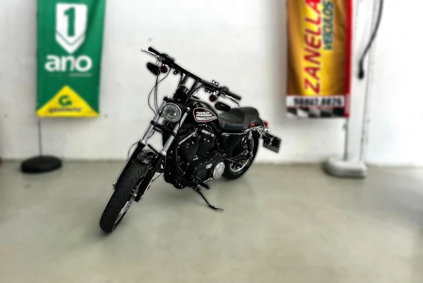 Com o potente motor Evolution 883 e o icônico ronco do escapamento Screaming Eagle, essa Harley entrega o equilíbrio perfeito entre força, estilo e tradição.